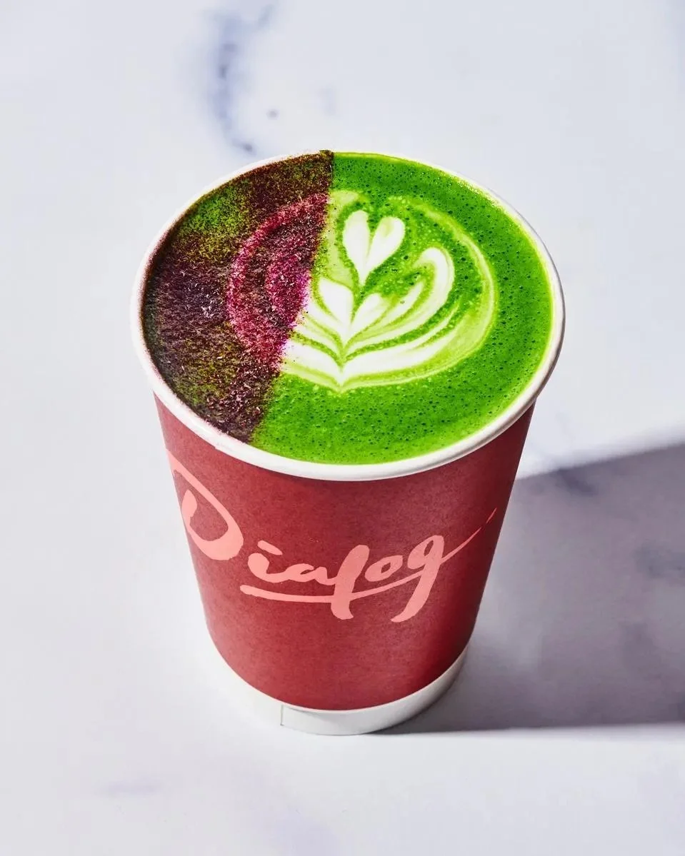 “At Dialog Cafe in West Hollywood, ceremonial grade matcha with housemade lavender syrup and steamed milk. “Our Lavender Matcha Latte is a twist on the classic. We steep organic lavender buds in a house-made simple syrup, drawing out the floral sweetness. Staying true to our zero-waste mission, the lavender flowers are dehydrated, ground, and blended with other edible blooms to create a vibrant garnish sprinkled on top. The drink is fragrant and soothing!” said owner of Dialog Cafe, Tadeh Ghazalian.”